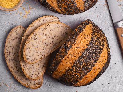 | Składniki | mąka PSZENNA, woda, zakwas ŻYTNI (mąka ŻYTNIA, woda), kasza jaglana (7%), siemię lniane, czarny SEZAM, otręby PSZENNE, sól, drożdże, gluten (z PSZENICY), czosnek niedźwiedzi, słód JĘCZMIENNY |